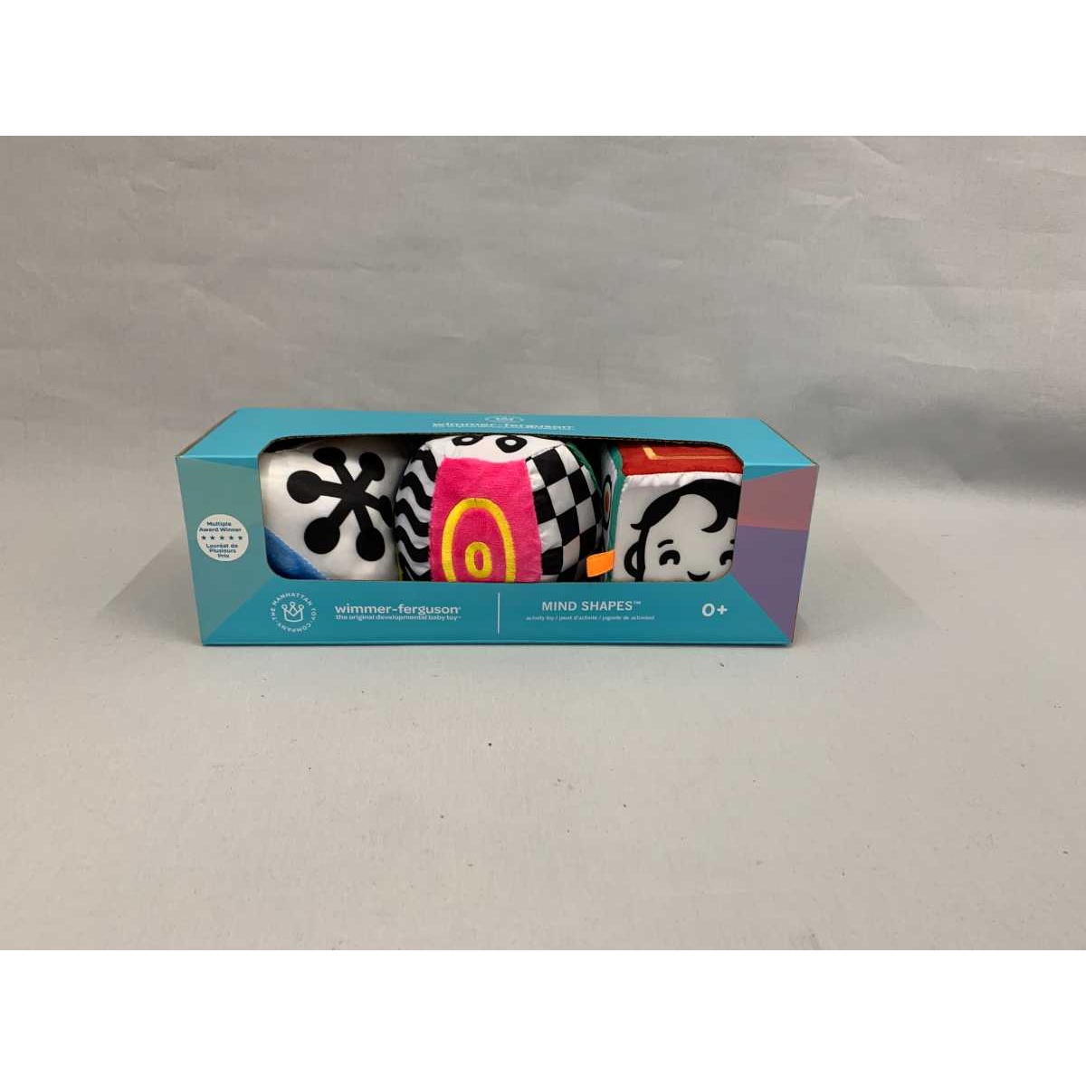 Each shape features visually stimulating, Wimmer-Ferguson researched black and white and color print graphics and hidden auditory stimuli, such as crinkle paper, a rattle, and a chime.