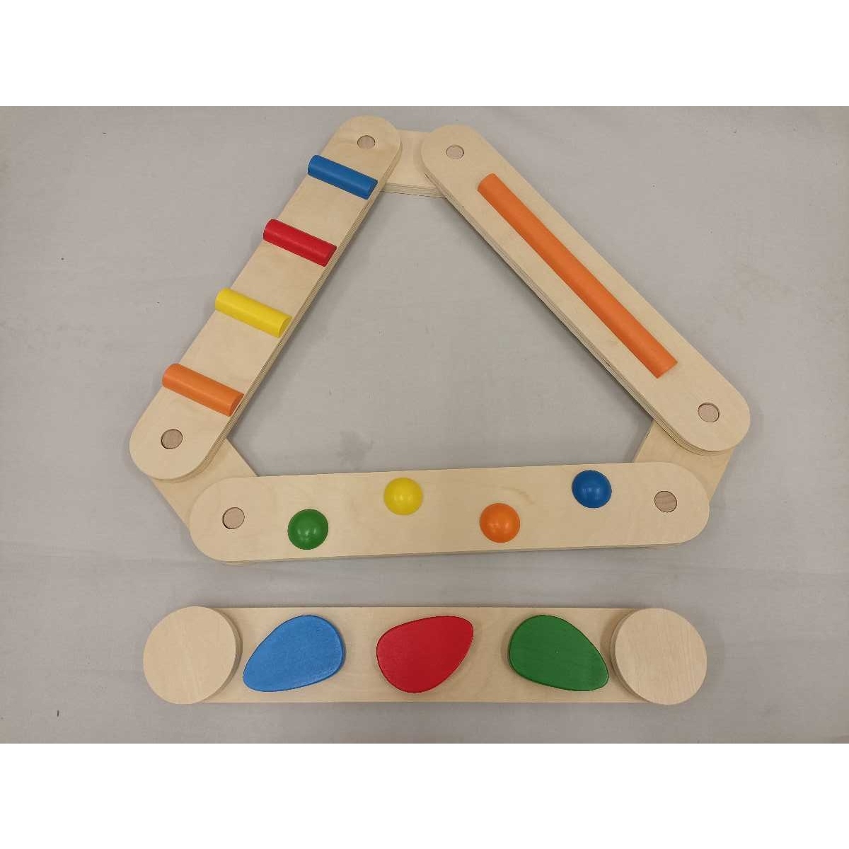 Interlocking wooden beams with raised shapes to promote balance and coordination.