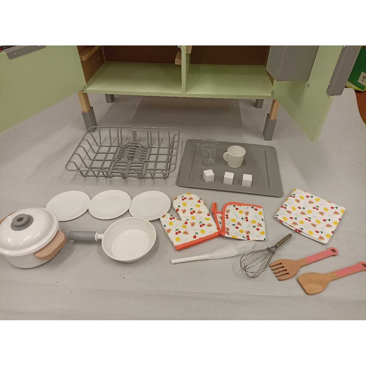 The Lupilu Wooden Play Kitchen is a delightful kitchen set designed for kids, made from durable wood in a charming white colour. This battery-powered toy features all the essential components of a kitchen, making it perfect for imaginative play and learning about cooking and baking. This play kitchen set is a creative and fun addition to any child's toy collection, encouraging hours of playful fun and role-playing scenarios.
