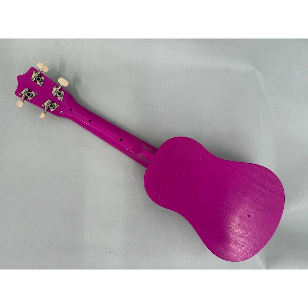 A small, lightweight pink toy guitar with star decorations and 4 strings. Perfect for imaginative play and early music fun for children 3 and up.