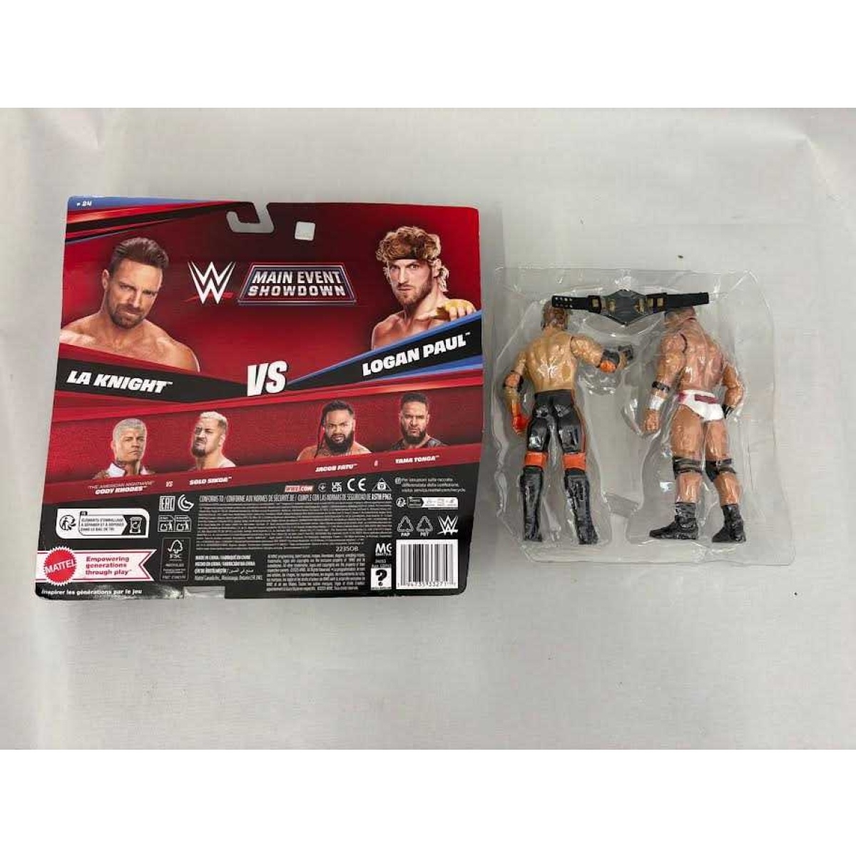 A collectible WWE 2‑pack for ages six and up featuring wrestlers LA Knight and Logan Paul in 6‑inch scale. Each figure has articulation for posing and comes detailed with TrueFX facial features and ring gear. The set includes one accessory to recreate rivalries or display as part of a WWE collection.