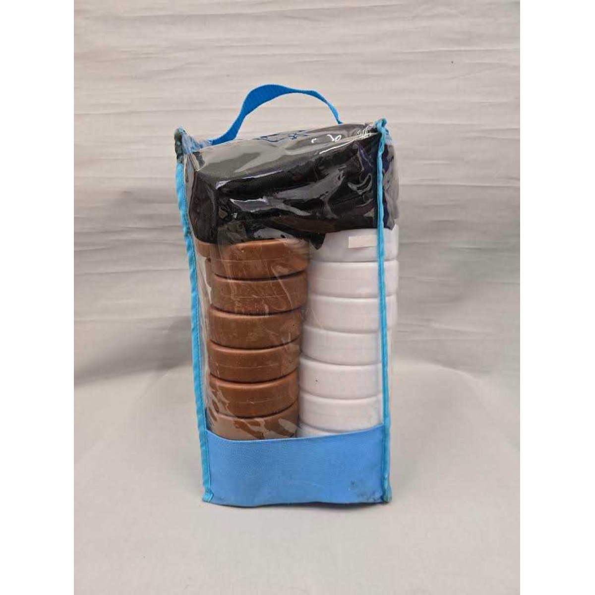 Each strong UV plastic draught piece measures 10cm in diameter so it is big enough for even little hands to play with
