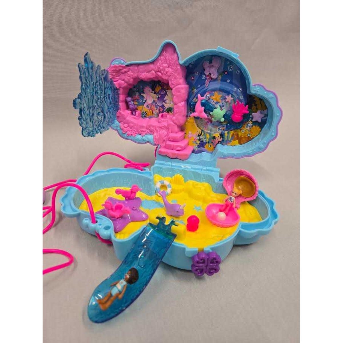 The 2-in-1 playset doubles the fun with 2 micro dolls, Polly and Shani, and 2 beach scenes. Just open the compacts and connect them by waterslide for the ultimate ocean adventure.