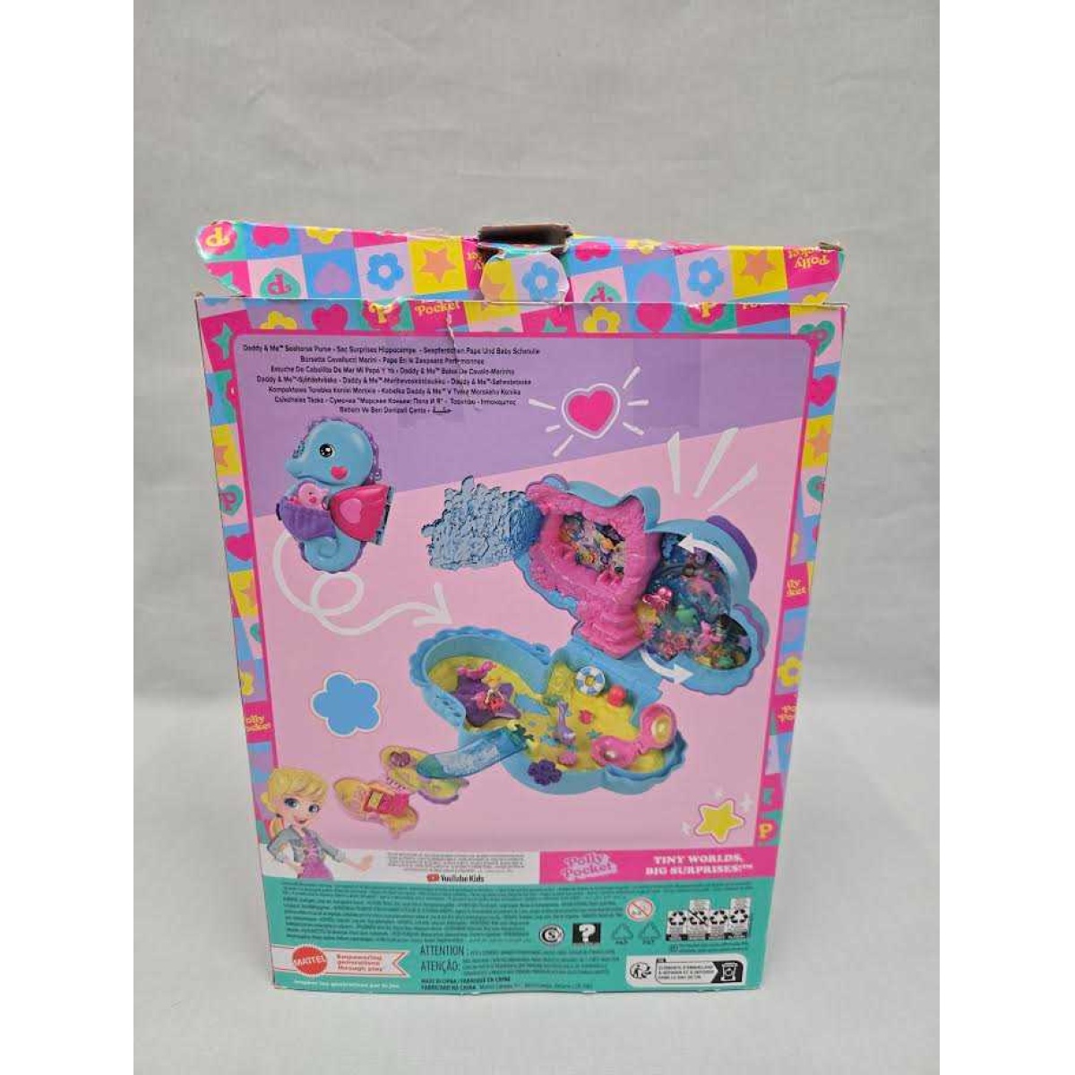 Polly Pocket Dolls & Playset with Pets & 13 Accessories, 2-in-1 Daddy & Me Seahorse Wearable Purse & Animal Toy, Starring Shani.
