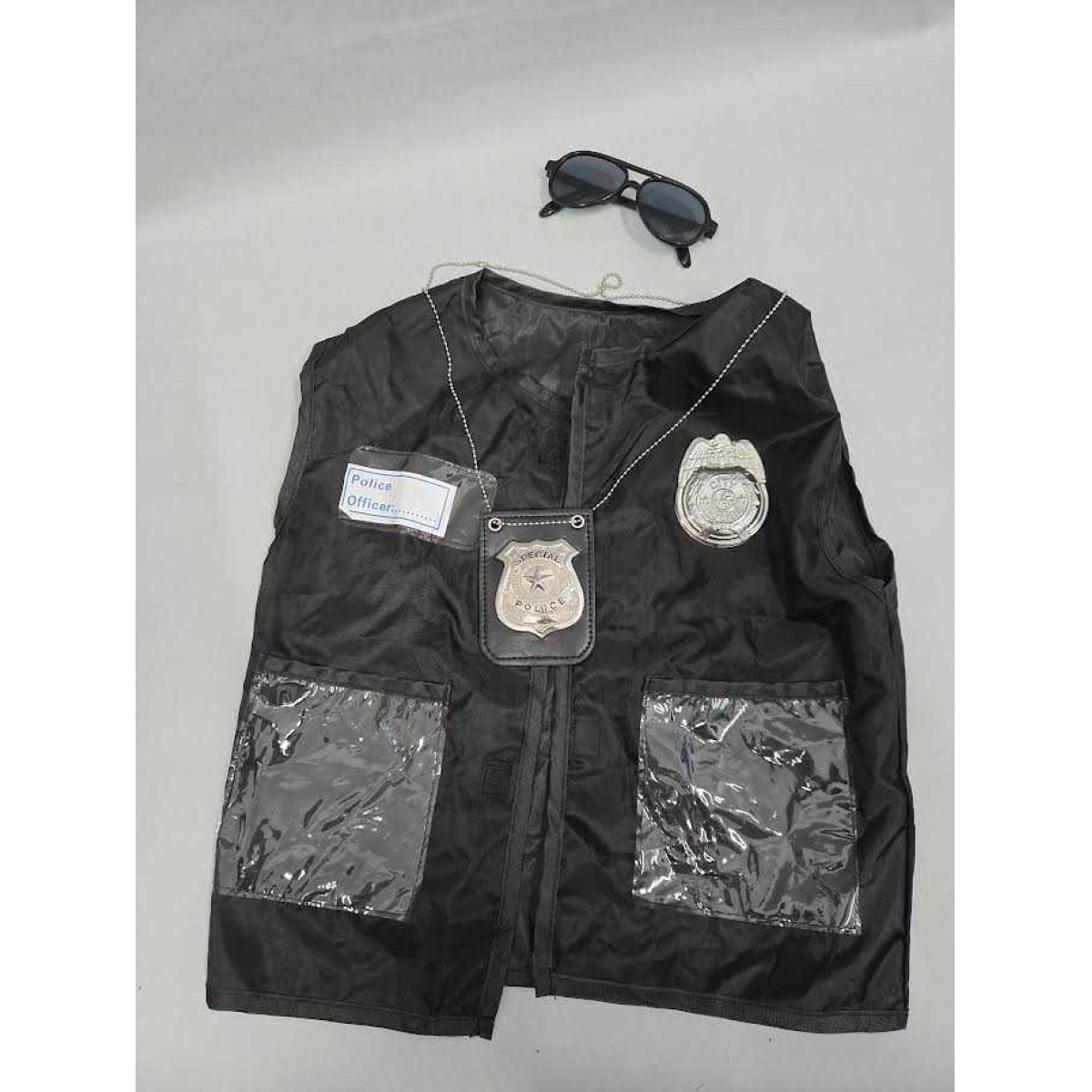 Black Police Vest, Silver Badge, Police Baton, Touch, Grenade, Black Sunglasses, Walkie Talkie and Policeman Hat - Childs Boys Girls Copper Policeman Policewoman Fancy Dress Costume.