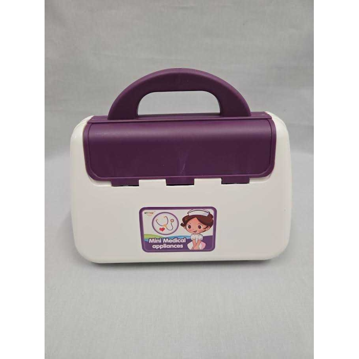 16 part Mini Medical Appliances toy set which includes a stethoscope, medical scissors, medical syringe and thermometer.