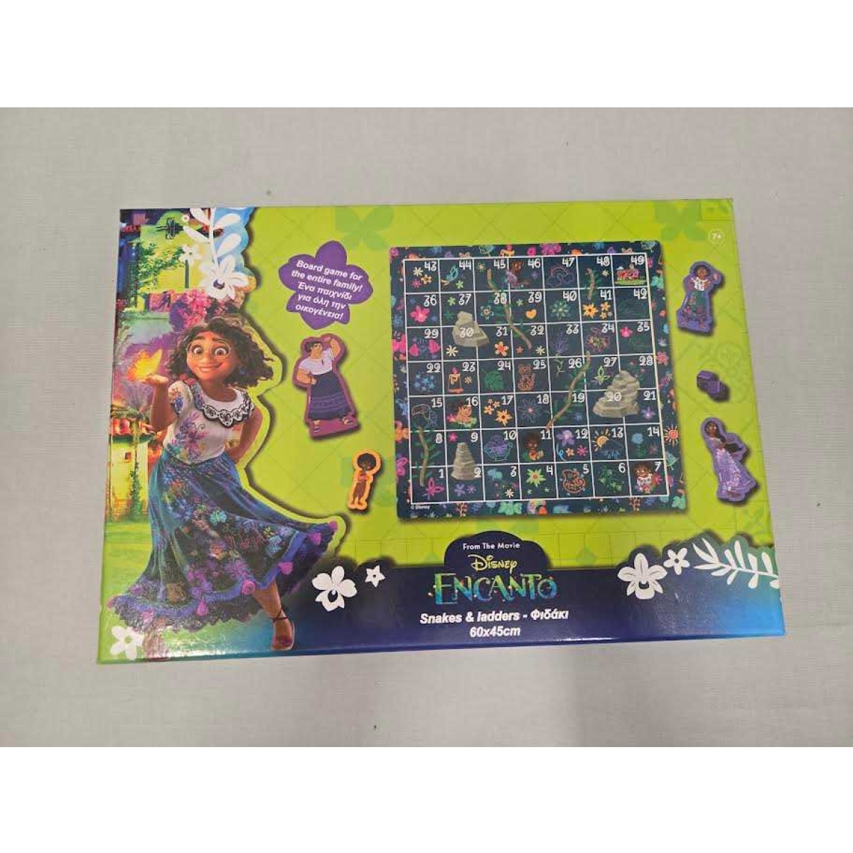 Bring the magic of the Madrigal family to game night with the Disney Encanto Snakes & Ladders Game. It blends the classic up and down race with colourful Encanto artwork so children recognise favourite characters while learning to count, take turns, and cheer each other on. Setup is quick, the rules are simple, and every roll brings a little drama as ladders leap you forward and snakes send you sliding back. It is the kind of game that fills a spare half hour after school or rounds out a cosy weekend with laughter and a quick rematch. Packed flat and easy to store, it slips neatly onto a shelf or into a toy basket so you can bring it out whenever family or friends drop by