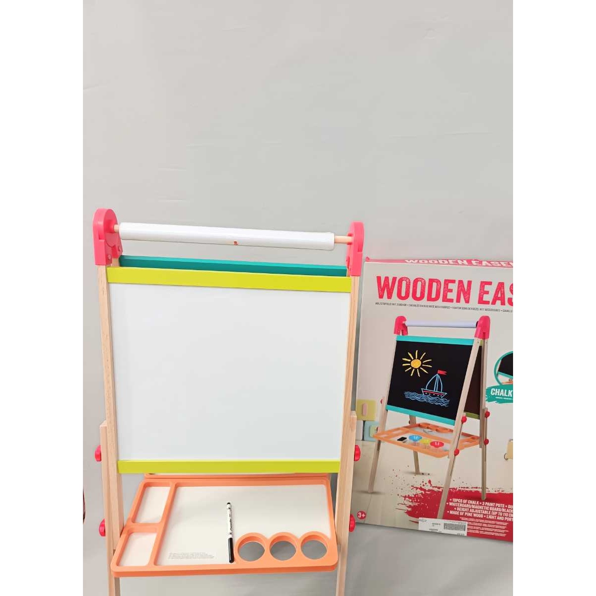 With a whiteboard on one side and a chalkboard on the other, this double-sided Three In One Kids Easel is perfect for letting your little ones get crafty. This easel also features a place to add a long paper roll for larger drawings and colourful bags to store all your painting tools.