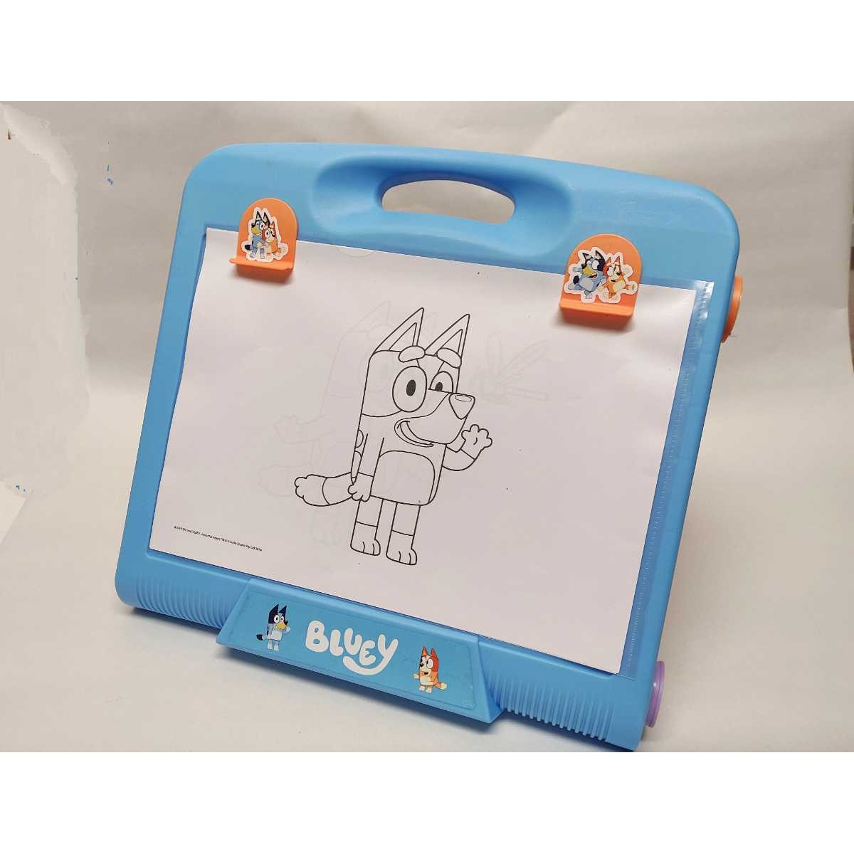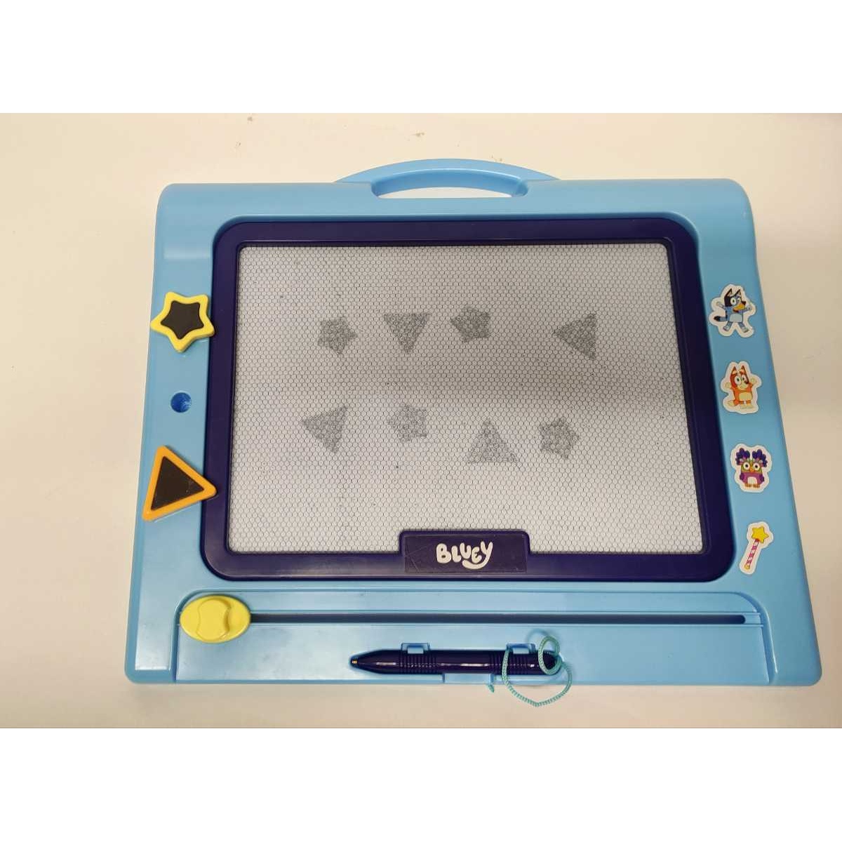 Doodle with Bluey and Friends with this magnetic scribbler pad, with a magnetic pen and 3 stamps!